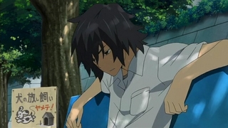 相生公園,與其說公園不如說空地,只有一個簡易的溜滑梯其他什麼都沒有,幾張椅子幾棵樹,還有地上的一堆土,大概下午三四點就有很多小孩在這邊玩追逐戰。原本這還有個木造涼亭,因為年久失修,幾個月前拆掉了,めんま曾經坐在裡面的涼亭已經消失。